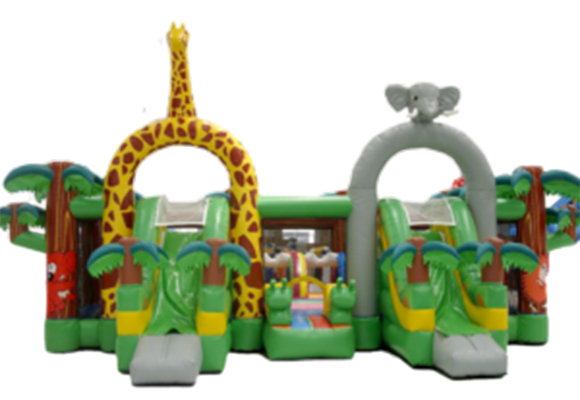 Climb, crawl,  slide, jump, dodge, squeeze, and twist yourself through a vivid jungle adventure! Jungle Funcity   includes a dazzling array of brilliantly colored, digitally detailed palm trees and jungle animals.  This unit is  the perfect combo for both indoor venues and outdoor events.